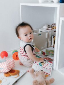 最近は1人遊びで“いないいないばぁ”ができるようになり、満面の笑顔で遊んでいる姿にほっこりすることも。しかし、「1人遊びを楽しんでいるな」と思ったら、急に寂しくなったのか、ママさんの足元にすり寄ってきたりと、まだまだ甘えん坊の様子です。