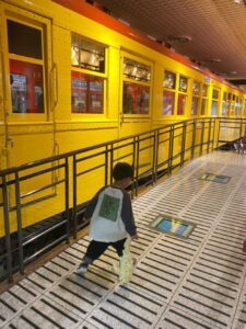 電車の横を歩く息子さん(@toyomaru0124さんより提供)