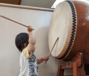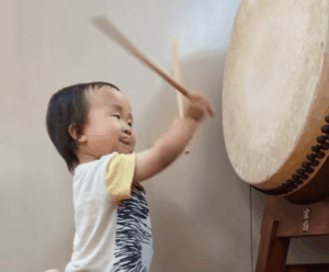 パパさんによると、家族で和太鼓をされているそうで、稽古場に連れて行くうちに、息子さんは1歳になる頃には自然と太鼓に興味を持ち始めたのだとか。