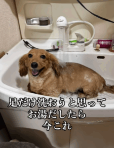 そこで飼い主さんは、洗面台でももちゃんの足を洗うことにしました。