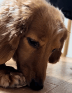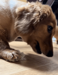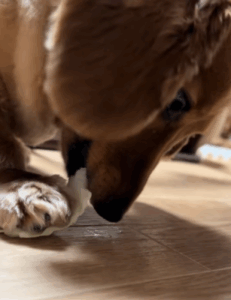 この日、家族は家のガレージでBBQを楽しんでいました。BBQが終わると、ももちゃんの足はすっかり泥だらけに。