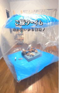 こうして完成したのが、レジャーシートで作られた秘密基地。強度がありながら作業もグッと楽になって、1時間ほどで形にできたと語ります。