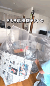 息子さんたちも「暑い夏に扇風機テントは涼しい」「テントの中で遊ぶのはいつもより楽しい」と大満足の様子でした!