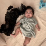 気持ちよさそうに眠る生後2ヶ月の息子とわんこ 2年後、二人の成長に…「かわいすぎる」「尊い」