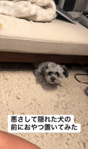 @peter.tiwapoさんが、いたずらをした後の愛犬の様子をTikTokに投稿すると「見つめ方も逃げ方も完璧」「隠れるのはやっ」などのコメントが寄せられ、話題になっています。