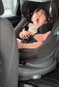 この日も、車の中で目をこすり、あくびをして眠くなった様子の娘さんは「ピーポーピーポー」と言い始めました。しばらく「ピーポー」を繰り返した後、娘さんは力尽きたように寝落ちします。
