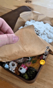 最下部におかず、その上を白米で隠すという一見「おかずはどこ…?」と思わせる仕組みでした。