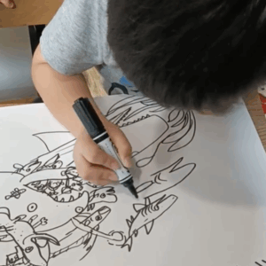 3歳の頃には毎日、コピー用紙何枚にもわたり魚の絵を描くようになります。