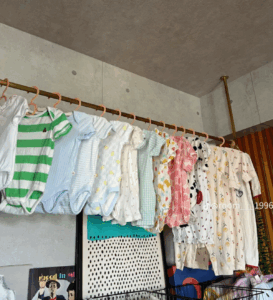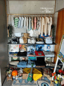 ハンガーバーと可動棚を備えることで、服を飾るように収納できる“古着屋風スペース”が誕生しました。