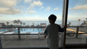 プールと海を眺める息子さん(@5daybentoさんご提供)