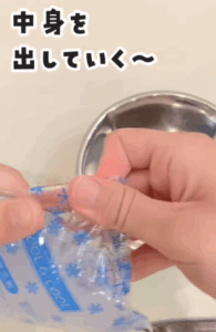 作り方は、まず保冷剤をボウルに入れて水を加えてよく混ぜます。