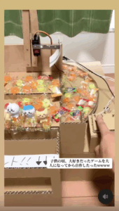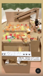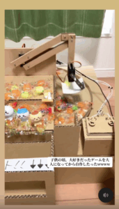 いとこさんと実際のゲームで一緒に遊んだ際、お菓子のタワーを崩しながら遊ぶゲーム性や、うまくいけば大量のお菓子がもらえるというワクワク感に強く惹かれ「ぜひ自分の手で再現してみたい」と思った投稿者さん。