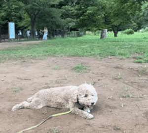 動画を撮影したこの日も、公園の土がむき出しになっているところに向かって一目散!