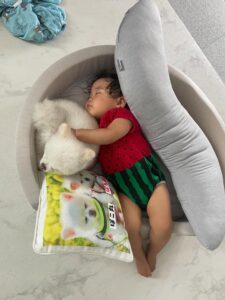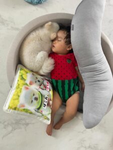 この日、ママさんがお手洗いから戻ると、娘さんとぽこ丸くんは一緒に眠っていたといいます。