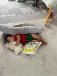 ワンちゃんと寄り添いながら、気持ちよさそうに犬用ベッドで眠る娘さん。ママ(@partydress5715)さんが、愛犬と娘さんの寝姿をThreadsに投稿すると「可愛さ最強です」「幸せとはこのことか…」「犬の顔がいい」などのコメントが寄せられ、話題になっています。