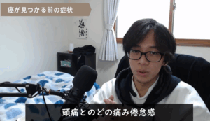 @karupinTVさんは、がんと診断される前に頭痛、のどの痛み、倦怠感を感じていました。特に熱とのどの痛みがひどく、大学1年生のときには扁桃炎で点滴治療を2回受けています。