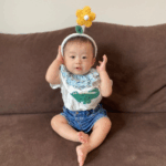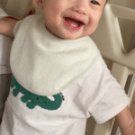 • よだれ掛けをじっくり見つめる5ヶ月娘。次の瞬間…思わず写真に収めた“まさかの行動”に「可愛すぎる」「尊い」「わかるんだね」
