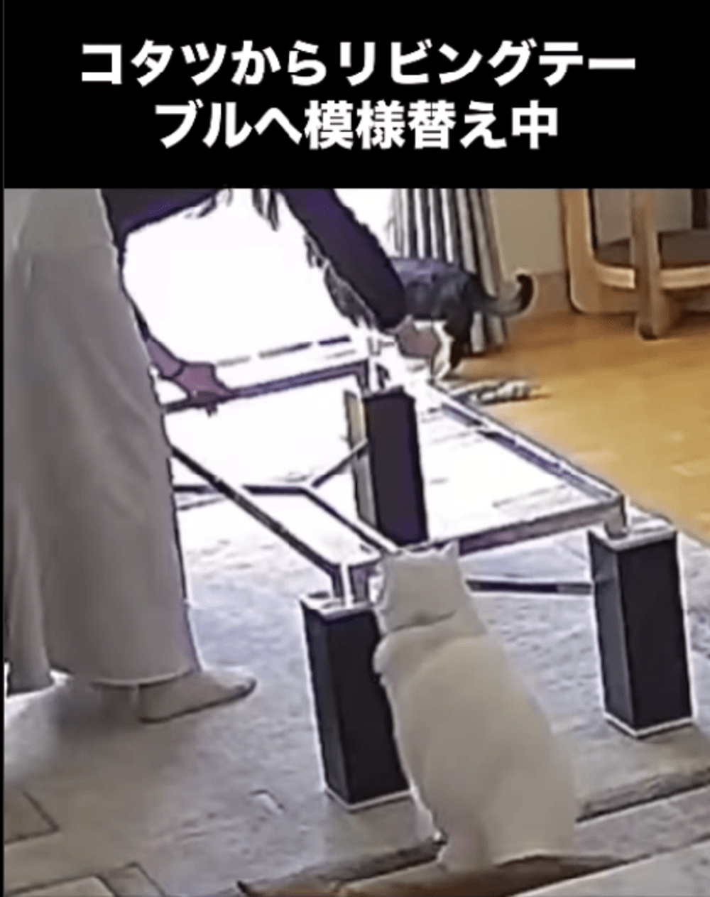 模様替え中に集まってきた猫ちゃんたち しかし直後…「これは笑っちゃいますね」「猫さんたち騙されてる」