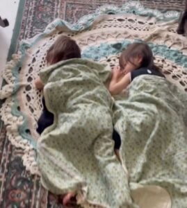 ラグを編んでいたのは、主に娘さんたちが夜寝たあとでした。また、下の娘さんたちがお昼寝をしている間に取り組むことも。上の娘さんたちは編み物に興味をもっているため、お茶を飲んだりアニメを観たりしながら一緒に編んだこともあるそうですよ。