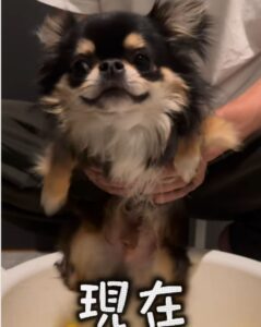 しょうぶくんはお風呂に入っていますが、水に怯えているようです。優しく水をかけても、怖がっていました。