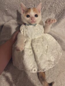 保護したときには、生後1ヶ月ほどのみっけちゃんは200gしかありませんでした。1年前に保護した先住猫ちゃんは、生後5日ほどで200gだったため、みっけちゃんの小ささにびっくりしたといいます。