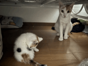 「初めて面会させたとき、ちまはみっけに興味深々だったので、血縁かもしれません」と@yapomesaさん。ちまくんとみっけちゃんは、保護場所も近いというので、血縁の可能性は高いのかもしれません。