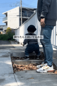 生後11ヶ月の息子さんと散歩していると、スロープと階段が併設されている道がありました。まだ歩く姿もぎこちない様子の息子さんですが、スロープではなく階段から下に降りようとします。