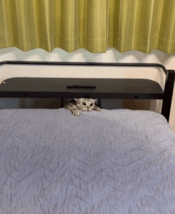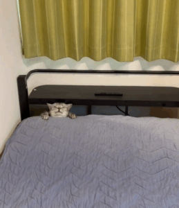 中でも“隙間”は大のお気に入りで、ベッドのすき間を見つけたときも、当然のように検分を開始。