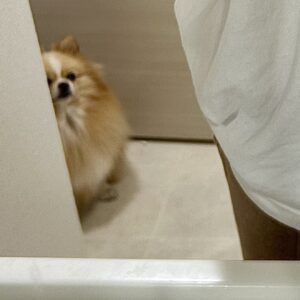 普段から、@pomepomePicardyさんが出かける支度を始めると、洗面所に現れて様子を見にくるのだそう。