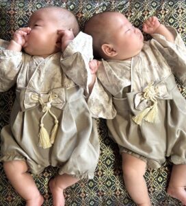 双子の百日祝いの日に撮影された“まさかの瞬間”