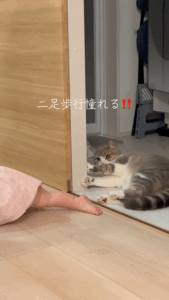 二足歩行に憧れるもちくん(@mochikun0129さん提供)