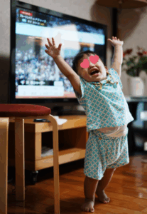 普段過ごしている家のベビーサークルよりも広い空間に大喜びした息子さんは、突然バンザイをしたまま家中を歩き回り、そのまましばらく楽しそうに「バンザイ歩き」を続けていたといいます。