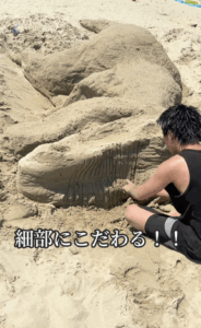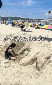 2023年に友人と3人で海に行ったとき、ふとした思いつきでサンドアートを始めた@yoshida_bachiyubiさん。