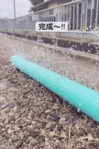 実際に作成して水を通してみると、想像以上に均等に水が行き渡り、自動散水のような便利アイテムになりました。身近な100円ショップのグッズが家庭菜園にピッタリな水まきパイプに大変身したのです。