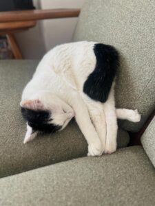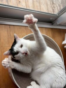 その体勢でお尻ポンポンされるのが好きで、少しでも中断すると「にゃあ」とおねだりすることも。