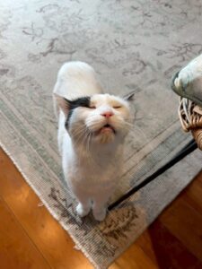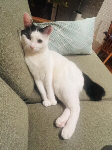 写っているのは飼い猫のもちくんで、推定5歳の男の子です。