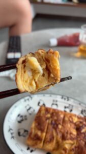 また、フライパンからお皿によそったときは巨大なバナナのような形だったため「キッチンペーパーを被せて形をきれいにできるよ」とも伝えました。