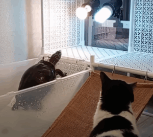 最後には、猫と亀が同じ空間で過ごすことは推奨していない旨を話し「お気をつけください」と注意を促してくれました。