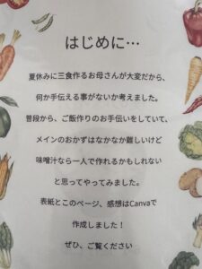「夏休みに三食作るお母さんが大変だから、何か手伝えることはないか」とある提案をしてくれました。
