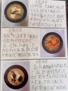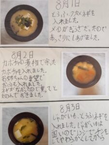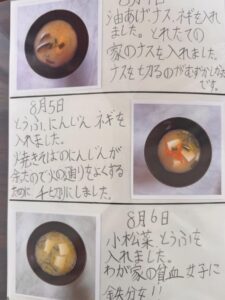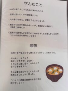 晩ご飯のメニューに合わせて具を決めたり、今までに作ったことのない味噌汁に挑戦したり、濃さが同じにならなかったりなど、さまざまな経験ができました。