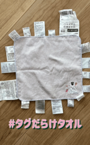 身近なものを工夫して生まれた“タグだらけタオル”は、娘さんにとって特別なおもちゃとなり、SNSでも多くの共感を呼びました。