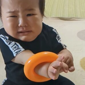 「すぐ取れましたけど」と輪を見せると、息子さんは輪をもう一度手に通しました。そして、再び「とれない…」と泣くのでした。