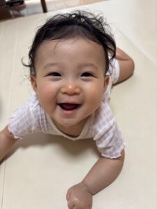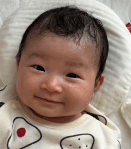 顔が変化したと思ったタイミングや部分について「生後5~6ヶ月くらいからうつ伏せやずり這いをするようになり、徐々にむくみが取れてきたのか目元がはっきりしてきた」と話してくれました。