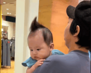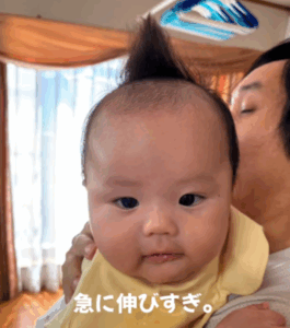 立ち髪ヘアに関して、同じ髪型の先輩ママさんたちから「月齢が進むと髪の毛が落ち着いてくる」とアドバイスを受けた@tanpopo22さん。
