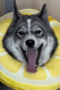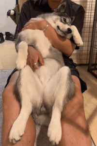動画の主役は、ハスキーとサモエドのミックス犬、はまちちゃん(1歳)。