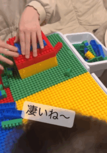 すると、お姉ちゃんがブロックを組み立てる様子を見ていた妹ちゃんは、パチパチと手をたたきながら、「凄いね~!」「じょうずじゃーん!」と、大絶賛!お姉ちゃんを全力で褒めはじめたのです。