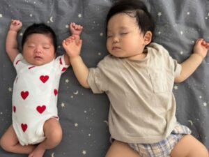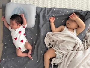 今回話題になっていたのは、生後0ヶ月の娘さんと1歳1ヶ月の息子さんが並んで寝ている様子を撮った動画。