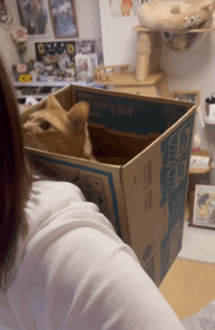 猫の箱が好きな習性から生まれた手作りおんぶ紐。