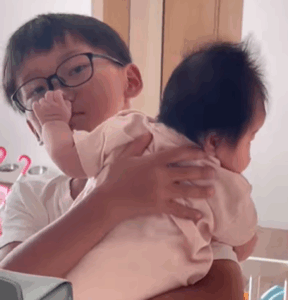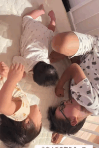 0歳の妹ちゃんだけでなく、1歳の妹ちゃんが泣いたときも優しくあやすお兄ちゃんの様子が投稿されています。