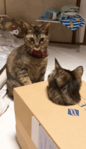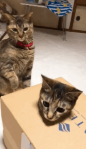 その中と外で、可愛い猫ちゃんたちのバトルが繰り広げられていました。
